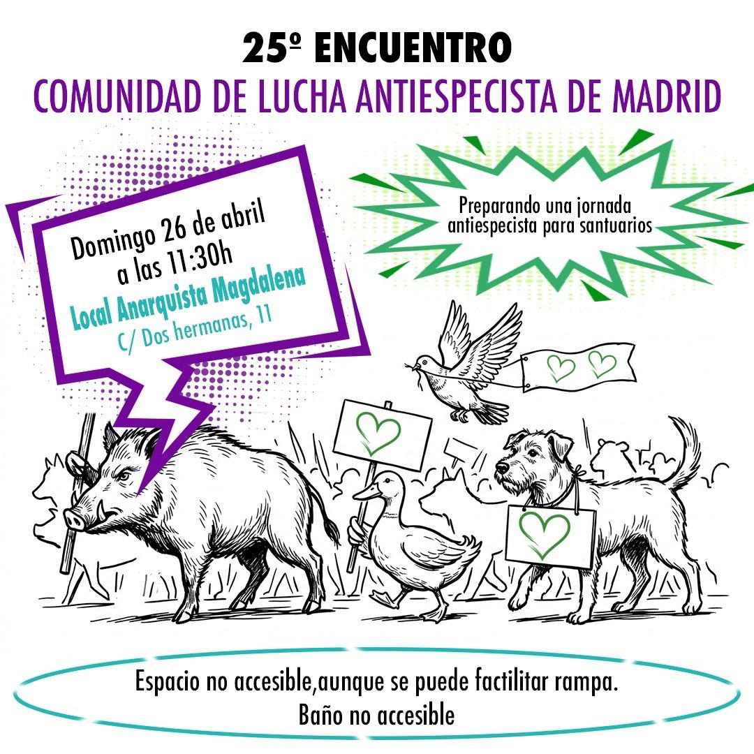 Nuevo encuentro de la Comunidad de Lucha Antiespecista de Madrid. Este domingo 26 de abril en el local (c/Dos Hermanas, 11)Es una asamblea abierta. ¡[...]