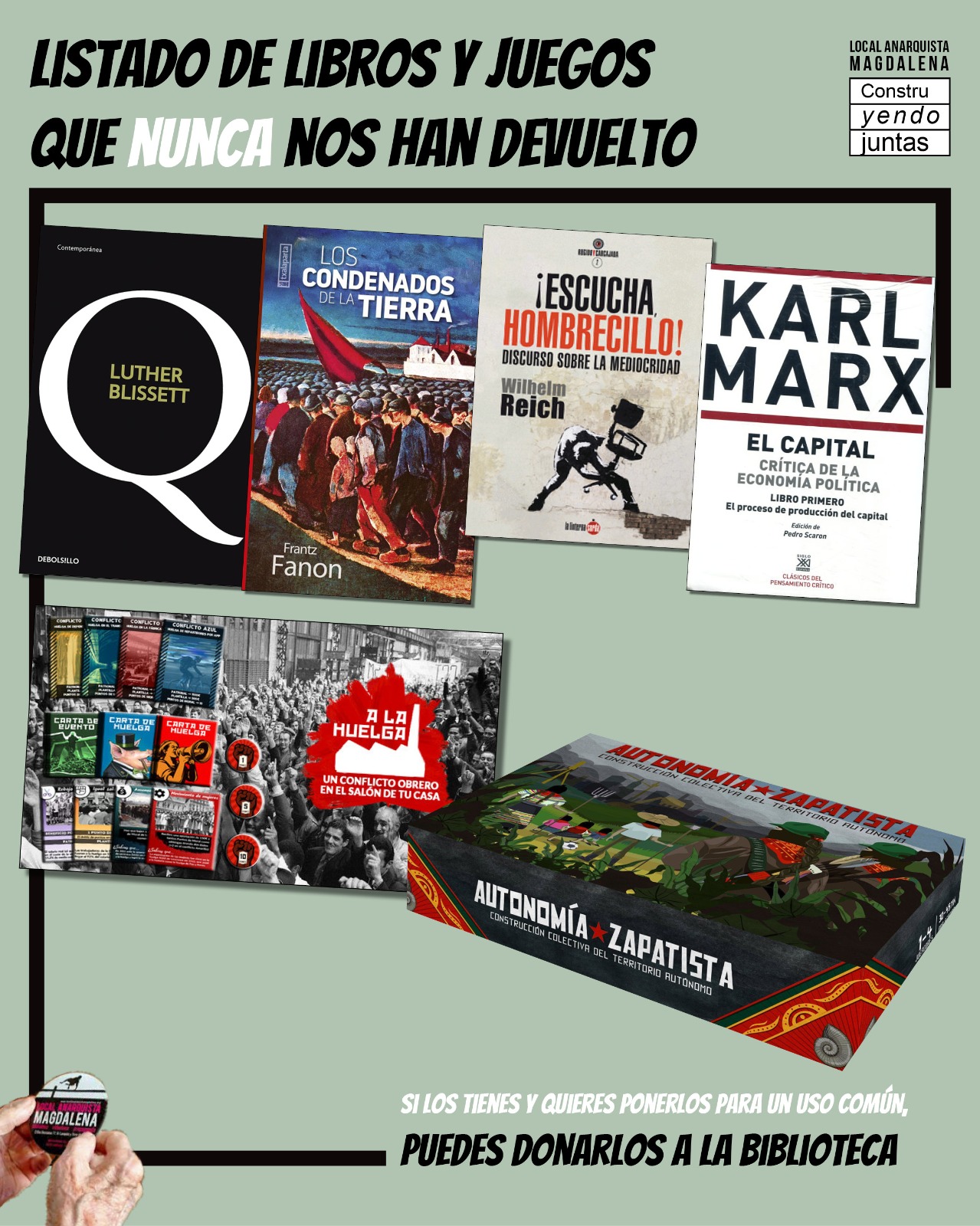 Os dejamos varios títulos (en la imagen) que no nos han devuelto y nos gustaría volver a tener.